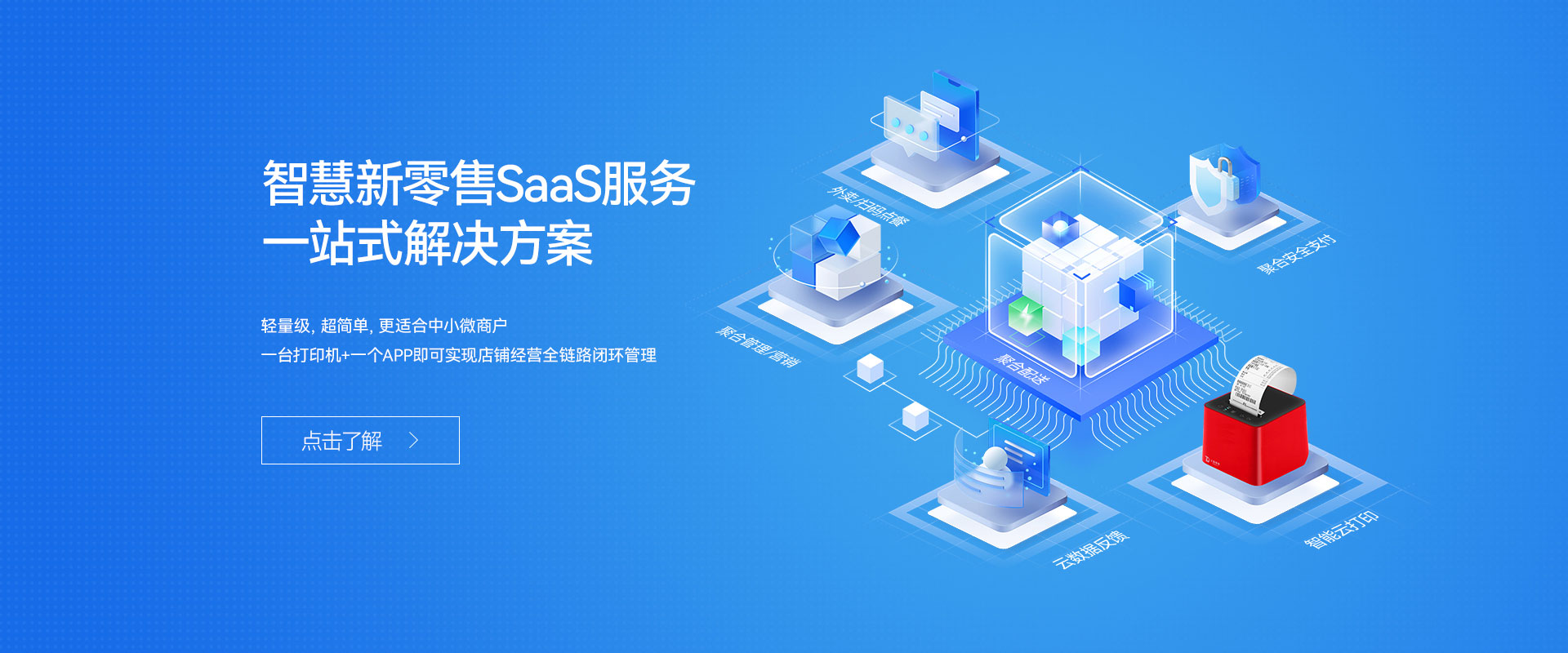 大趨智能,創立于2016年,位于深圳市南山區,注冊資金2000萬元,是國內領先的智能支付解決方案供應商,專注外賣云打印機,熱敏打印機,票據打印機,藍牙打印機,wifi打印機等智能云打印機設備。 旗下品牌小店掌柜主要致力于為中小微商戶提供SaaS服務一站式解決方案,具備業內獨有的多項聚合功能,主要包括掃碼點餐、自營外賣、聚合外賣、聚合管理、聚合營銷、聚合配送等服務,助力商戶低成本實現高效經營,形成互利共榮的一體化生態系統,提升收益與效率。